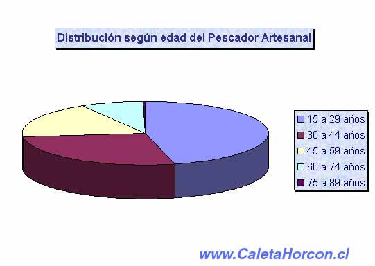 Al observar el gráfico anterior, se infiere que la mayor concentración de personas corresponde a los tramos de edad de 30 - 44 años y 45 - 59 años (78,1%), lo que nos indica que estamos ante la presencia de una población pesquera artesanal adulta. Por otro lado, el tramo etáreo que concentra a personas entre los 60 - 74 años y 75 - 89 años, involucra a menor porcentaje lo que se traduce en una población joven que desarrolla esta actividad. Esto implica por un lado, la incorporación de los hijos al trabajo, como también, el traspaso del equipamiento material, como a su vez, una movilidad ocupacional, y, el pescador adulto mayor comienza a desarrollar labores de encarnador, ayudante o auxiliar, causado principalmente por la dificultad física que presenta éste para trabajar a bordo de la embarcación. De acuerdo a lo observado, se aprecia que los jóvenes que se incorporan, en su mayor parte continúan el trabajo de sus padres, ingresado en calidad de pescadores tripulantes. Actualmente el proceso de incorporación temprana a la Pesca artesanal se ha revertido, explicándose ya sea, por la mayor cobertura educacional, por la mayor diversificación de las actividades económicas productivas de la comuna, así como al proceso de globalización de nuestra sociedad que nos presenta diversas alternativas de desarrollo; siendo la principal aspiración de estos sujetos, continuar la enseñanza formal técnica profesional, visualizando a la pesca artesanal como una actividad transitoria.
